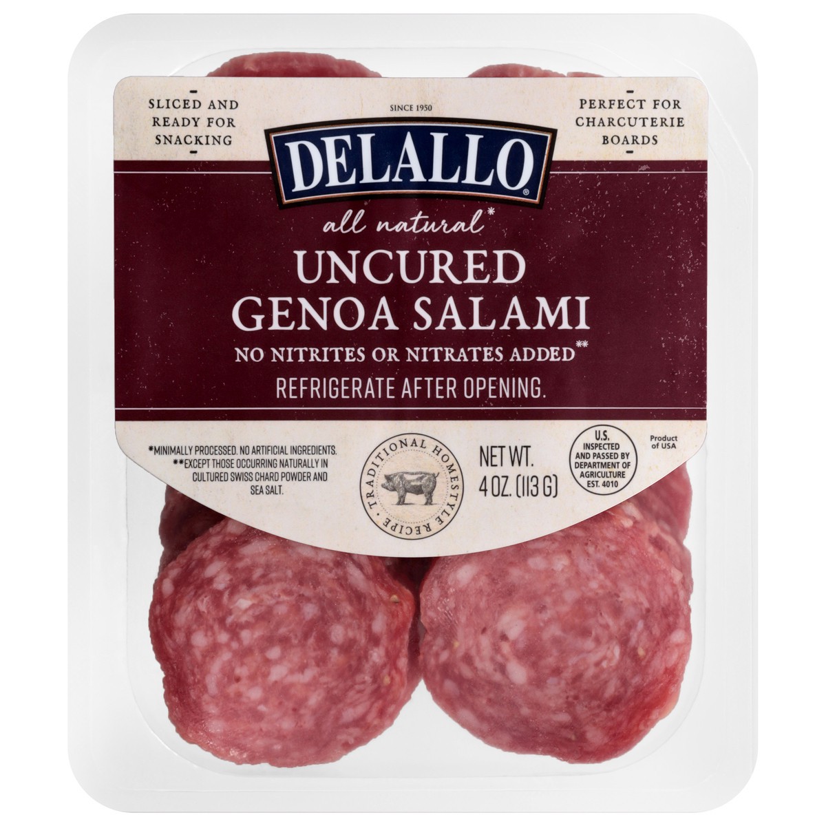 DeLallo Uncured Genoa Salami 4 oz