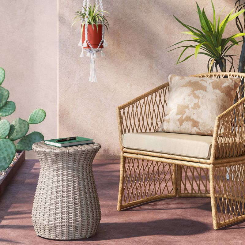 All-Weather Wicker Round Monochromatic Rope Accent Patio End Table Tan - Threshold™