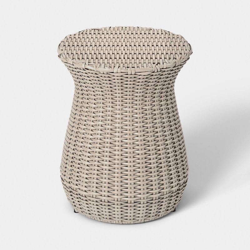 Bring lasting beauty and convenience to your outdoor space with this All-Weather Wicker Round Rope Accent Patio End Table from Threshold™. The patio end table features a round silhouette with an allov…