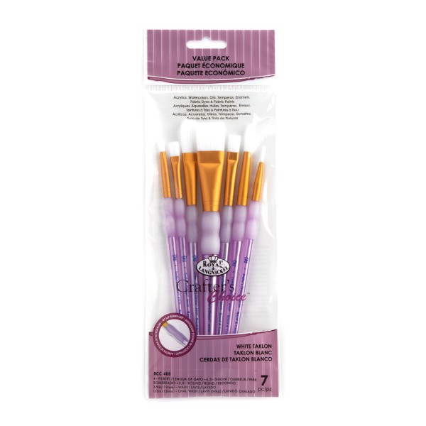 Royal & Langnickel Crafter's Choice White Taklon Flat Variety Brush Set