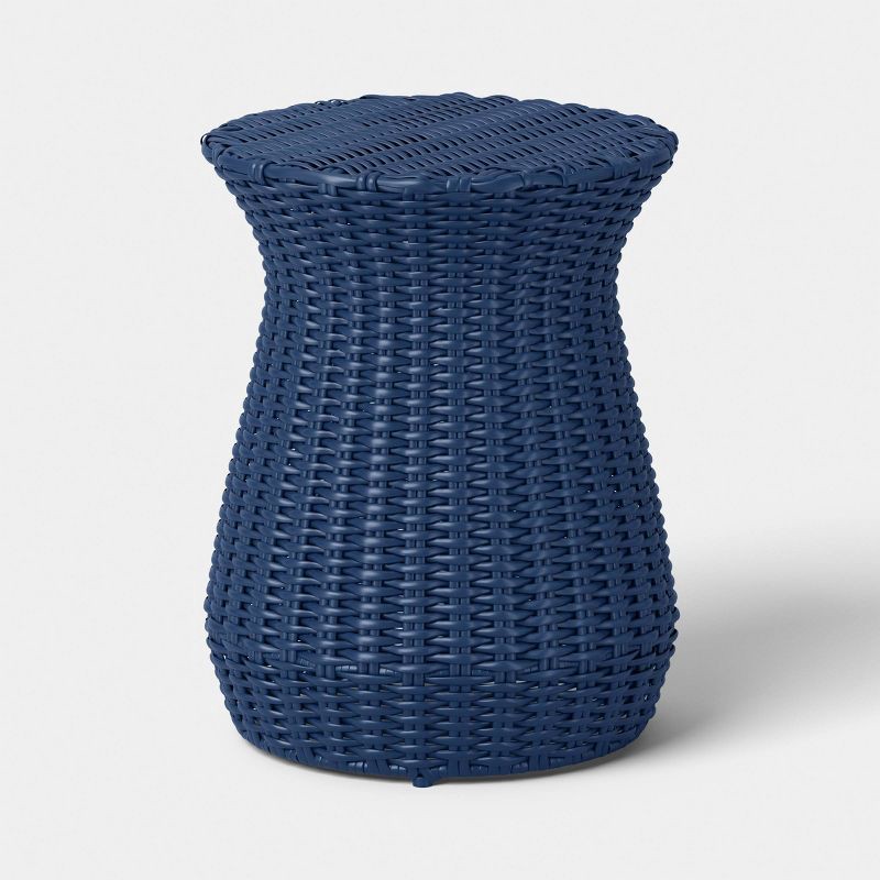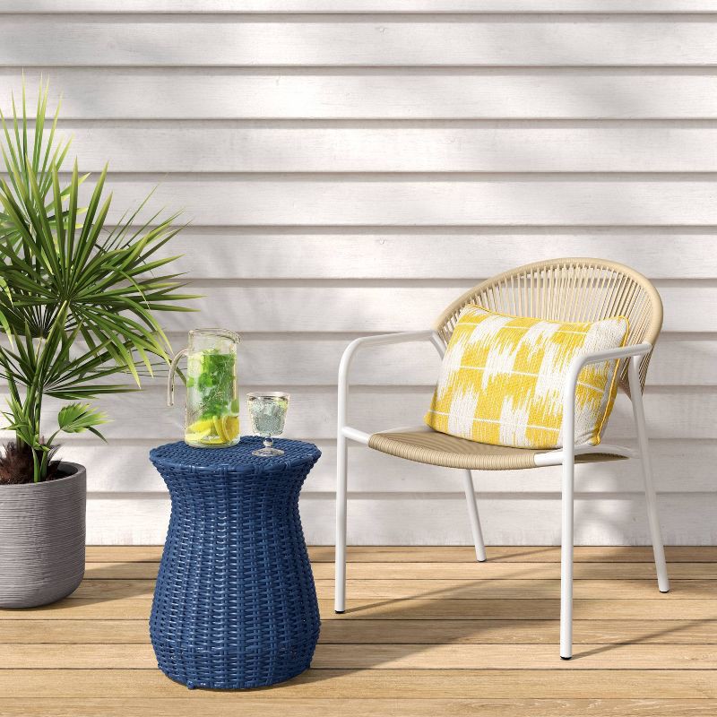 All-Weather Wicker Round Monochromatic Rope Accent Patio End Table Navy - Threshold™