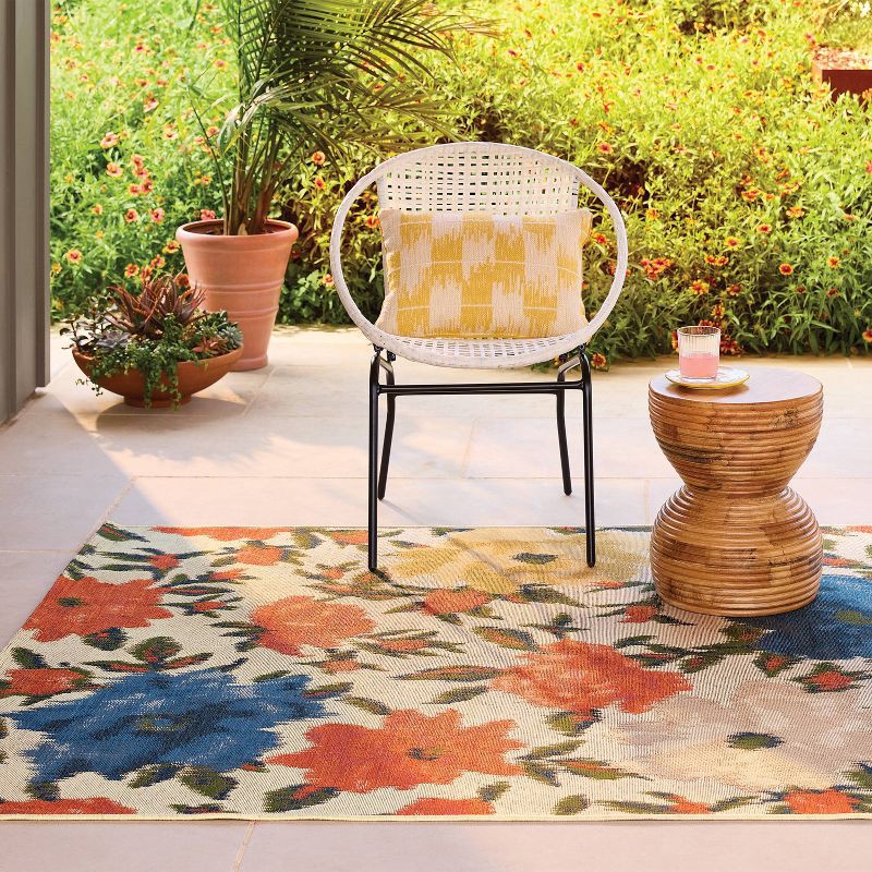 5'x7' Ikat Blossom Rectangular Woven Outdoor Area Rug Orange - Threshold™