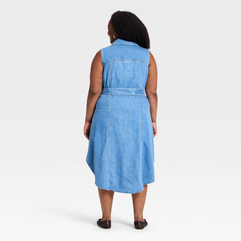 Women's Plus Sleeveless Denim Utility Midi Shirtdress - Ava & Viv™ Medium Wash 20
