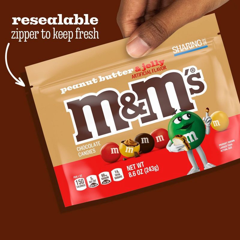- Inspired by your favorite lunchtime snack, meet our NEW M&M'S Peanut Butter and Jelly candy! Enjoy the flavors of creamy peanut butter and sweet jelly, coated in milk chocolate and colorful candy shells