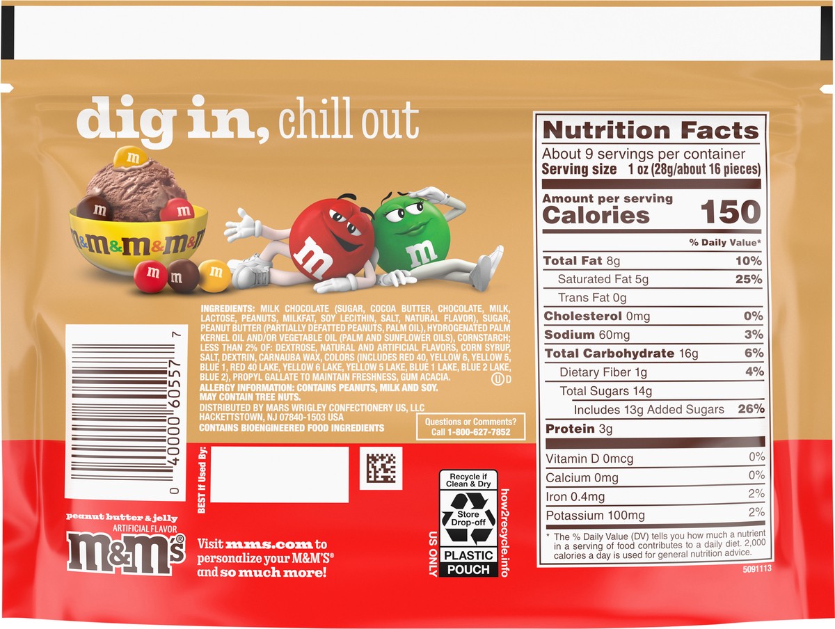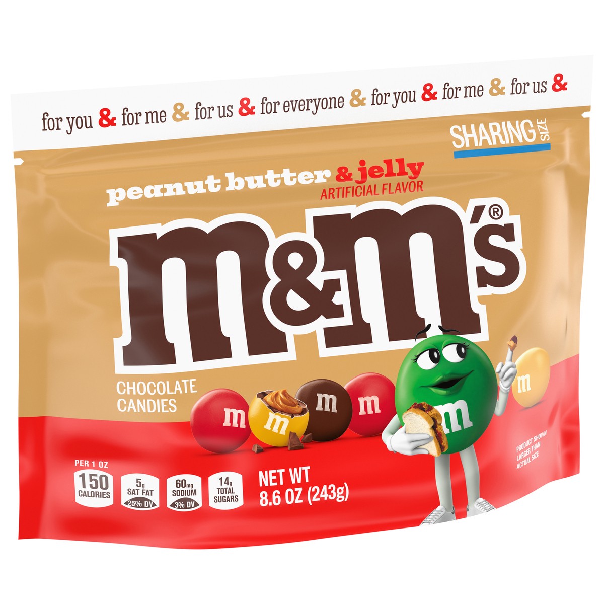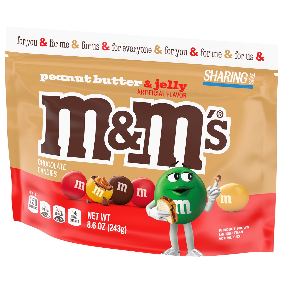 - Coated in milk chocolate and colorful candy shellsWind down after a long day with M&M'S Milk Chocolate Peanut Butter and Jelly—pure comfort in every blissful biteBrighten up your workday with M&M'S Peanut Butter and Jelly candies—because even your taste buds deserve a break from spreadsheetsWhat's better than a peanut butter and jelly sandwich? M&M'S Peanut Butter and Jelly candy—a bite-sized blast from the past