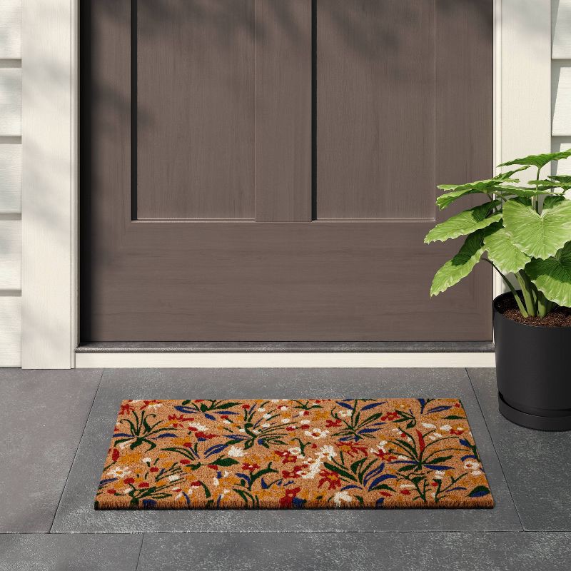 Add decorative style to your entrance with this Rectangle Outdoor Door Mat from Room Essentials™. This rectangular outdoor doormat is adorned with a vibrant Charlcie floral pattern in white, red, blue…