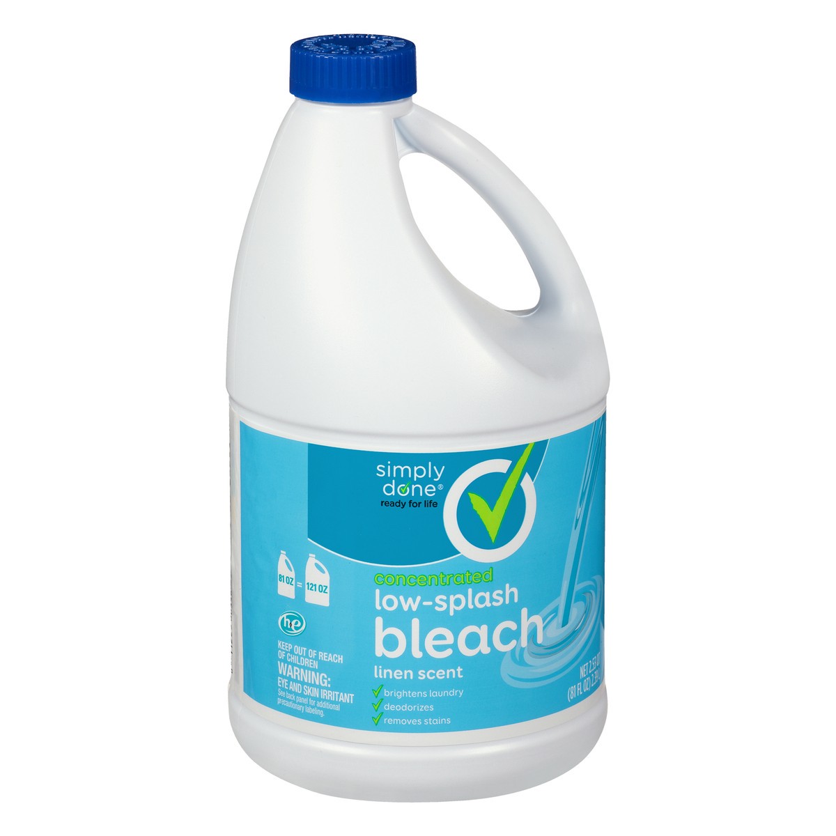 Ready for life. 81 oz = 121 oz. HE. Brightens laundry. Deodorizes. Removes stains. Quality Guarantee: If you are not 100% satisfied, return our product for a full refund. www.besimplydone.com. how2rec…