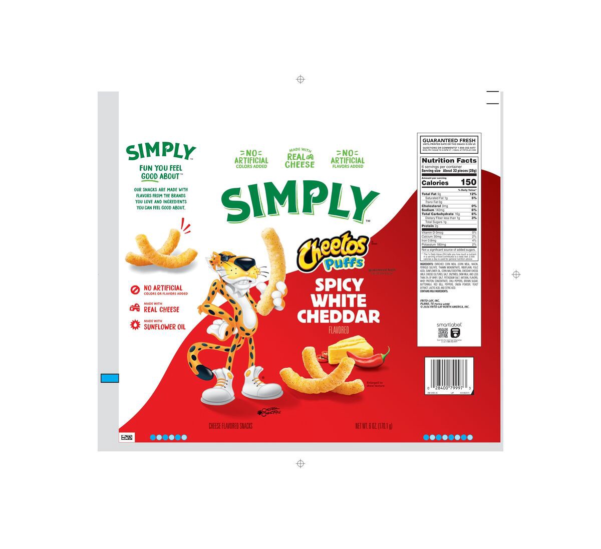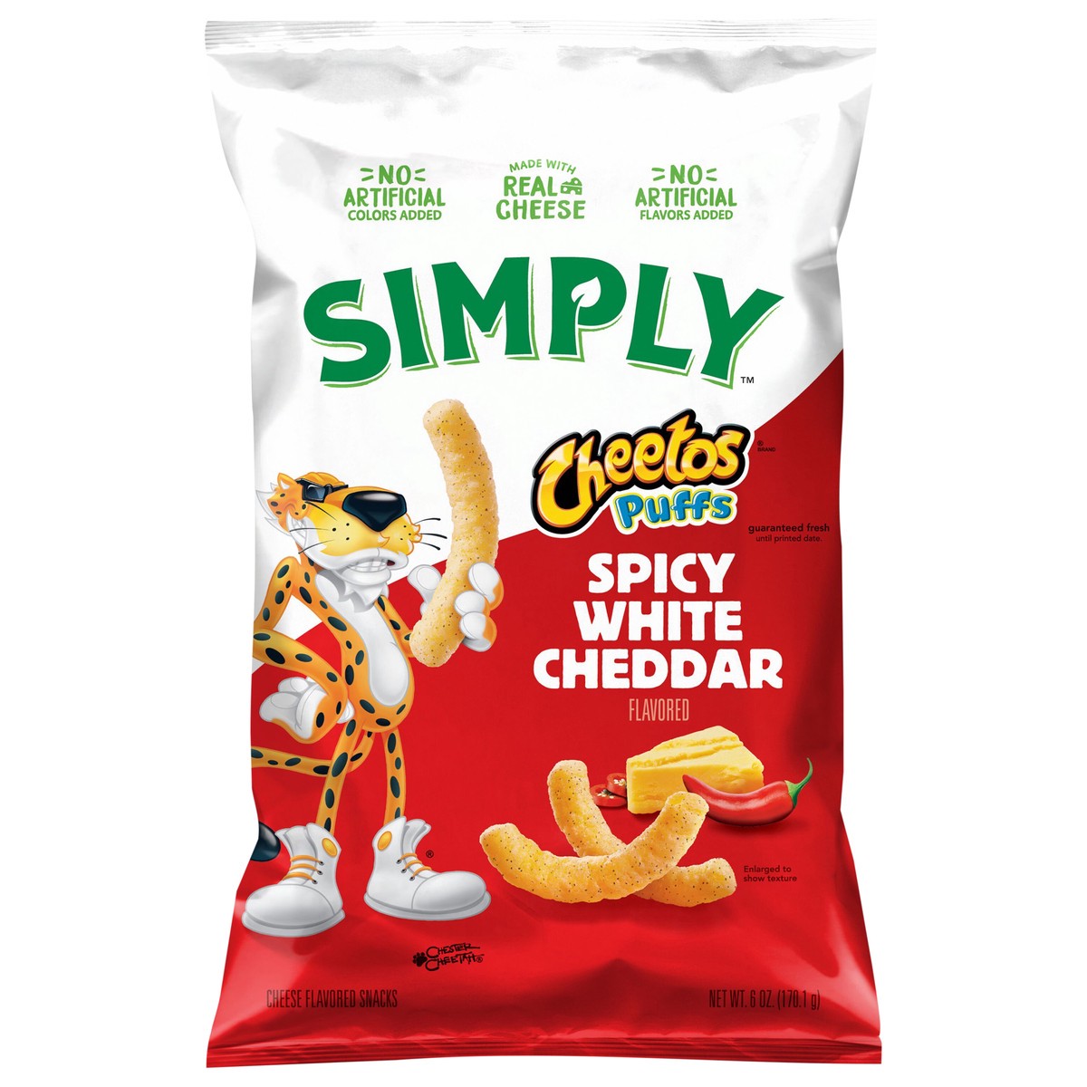 Cheetos Simply Puffs Cheese Flavored Snacks Spicy White Cheddar Flavored, 6 Oz