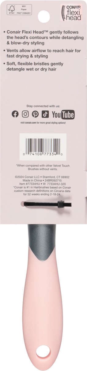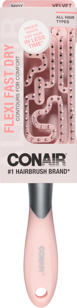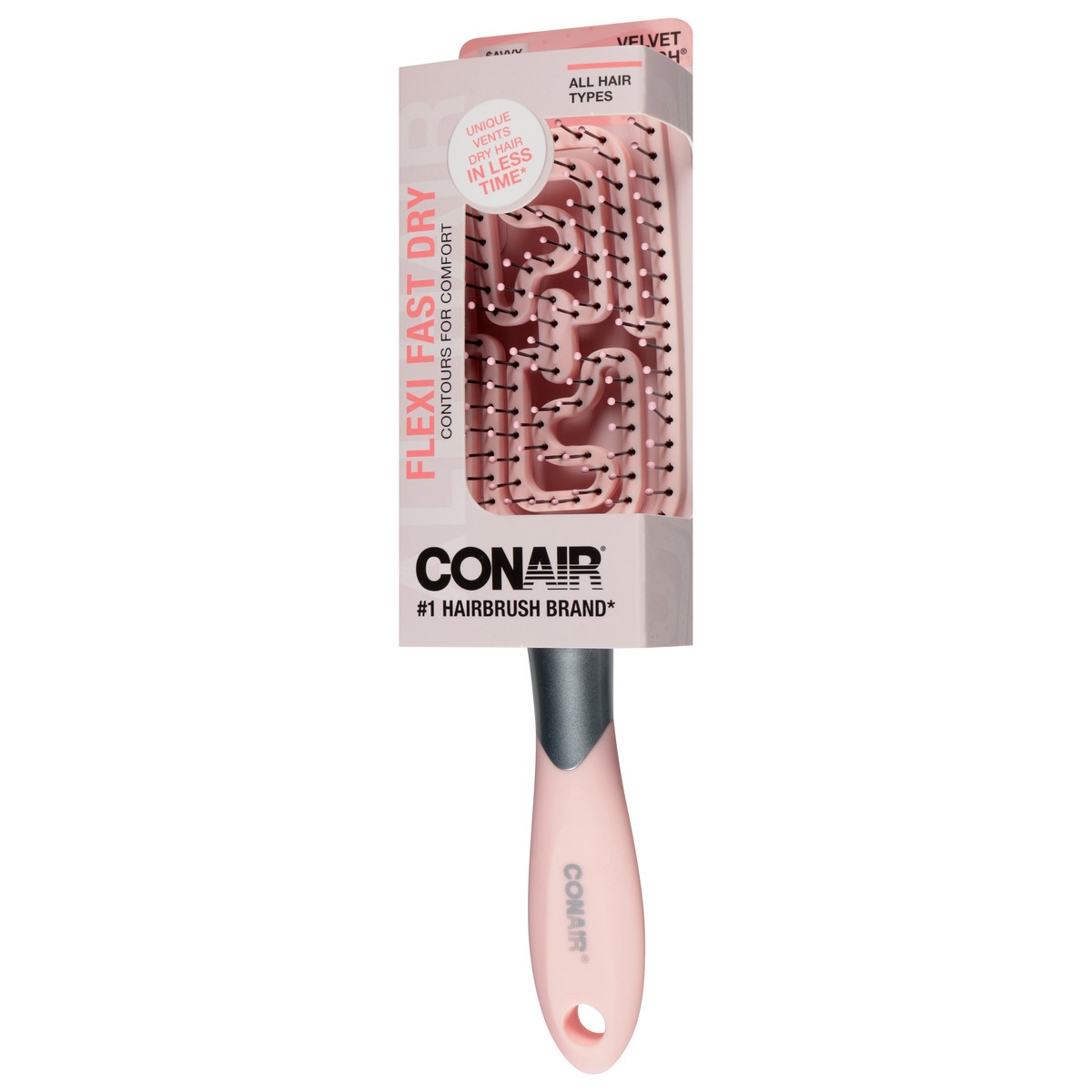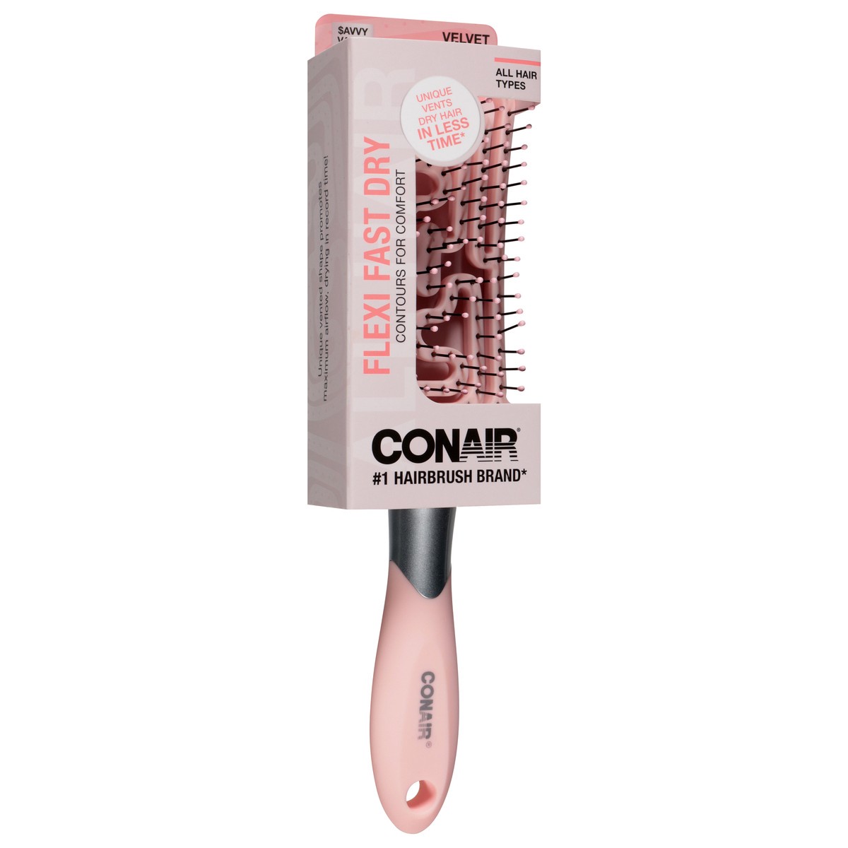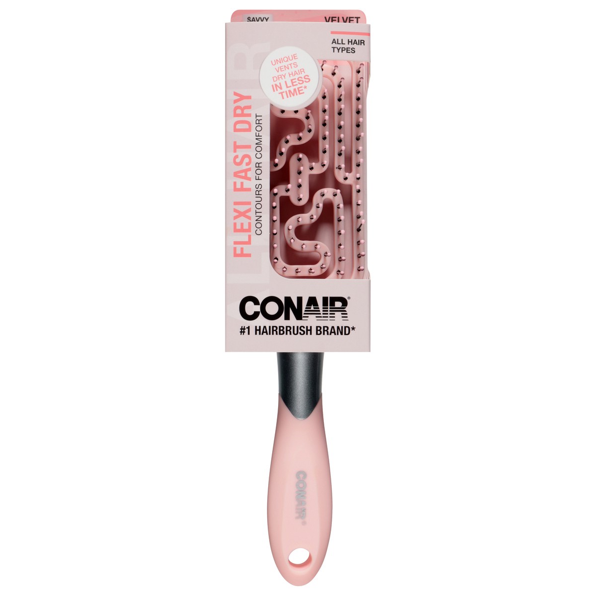 Specially designed for quick blow-dry styling, this innovative hairbrush features vents that funnel airflow to reach hair fast. The unique Conair Flexi Head⢠follows your headâs contours for thoro…