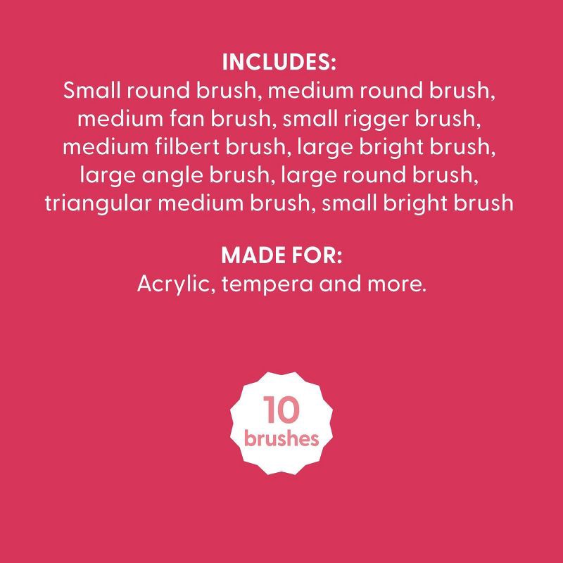 You'll be all set to create masterpieces in paint with this 10-Piece Artist Paintbrush Set from Mondo Llama™. With 10 different brushes in round, fan, bright and angle shapes and a variety of sizes, t…