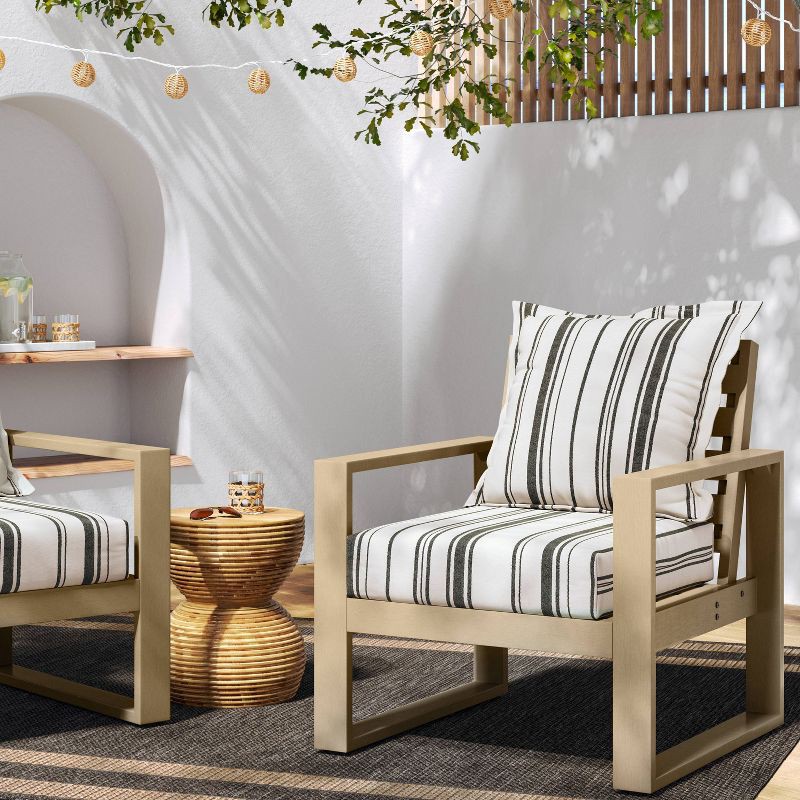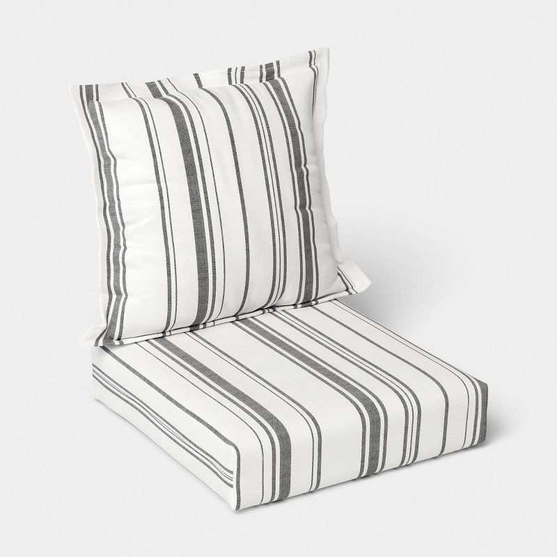 Woven Stripe Deep Seat Cushion Set Black/Ivory - Threshold™
