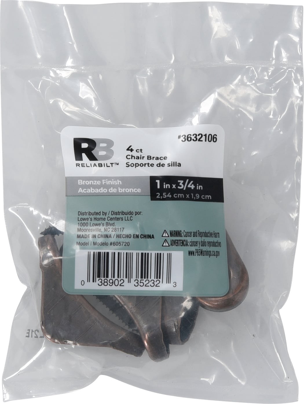 RELIABILT 1-in x 0.75-in x 1-in 1 -Gauge Antique bronze Steel Chair brace 4 -Pack