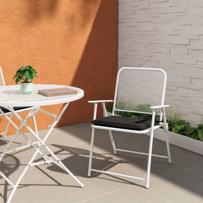 Bring style and comfort to your outdoor seating space with this Solid Outdoor Chair Cushion from Room Essentials™. The solid chair cushion is made from recycled polyester and has a foam filling for co…