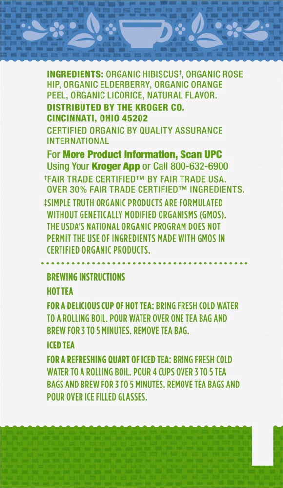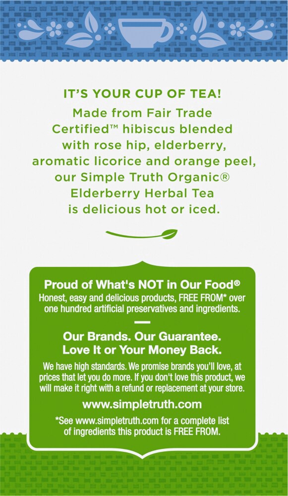 Simple Truth Organic® Elderberry Herbal Tea delivers a deliciously soothing blend, deeply infused with organic elderberry and balanced by the tartness of organic hibiscus and organic rose hip. Kissed …