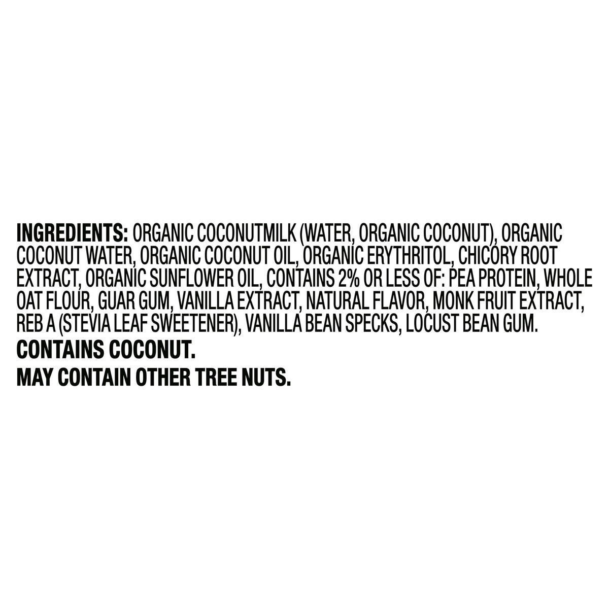 Organic Coconutmilk (Water, Organic Coconut), Organic Coconut Water, Organic Coconut Oil, Organic Erythritol, Chicory Root Extract, Organic Sunflower Oil, Contains 2% or Less of: Pea Protein, Whole Oa…
