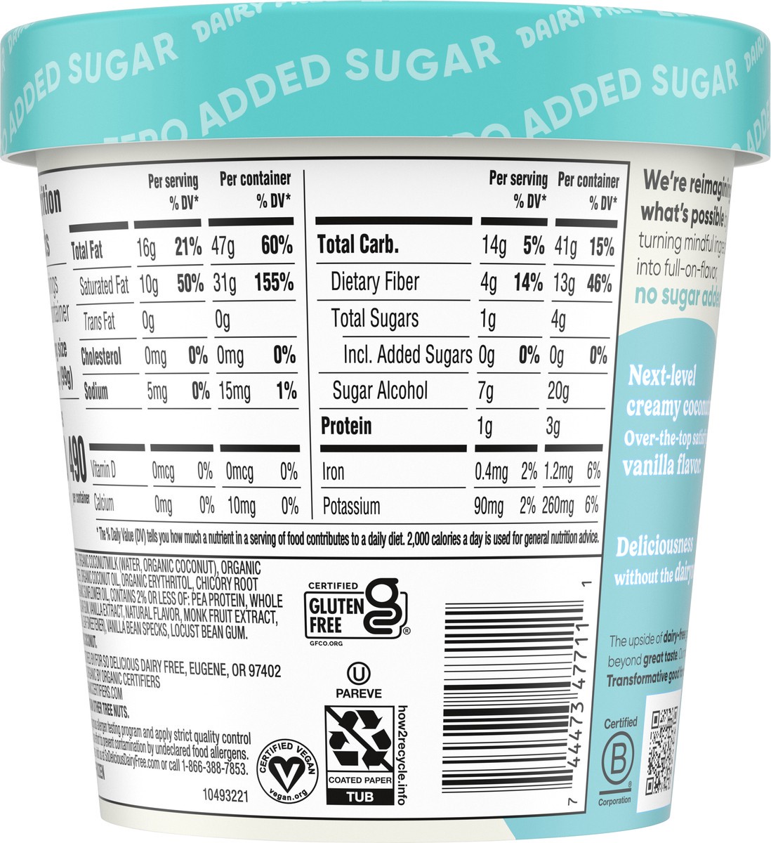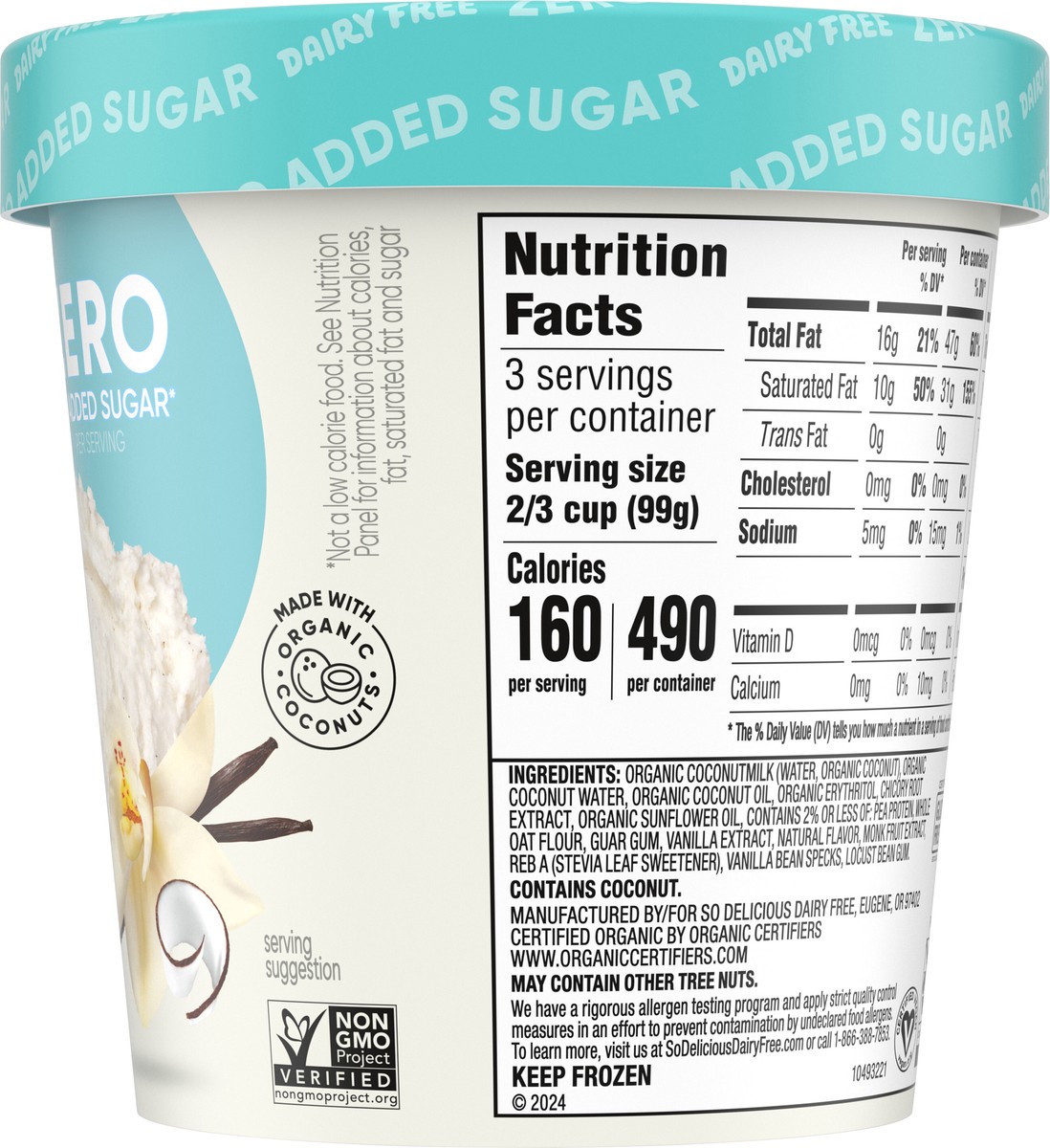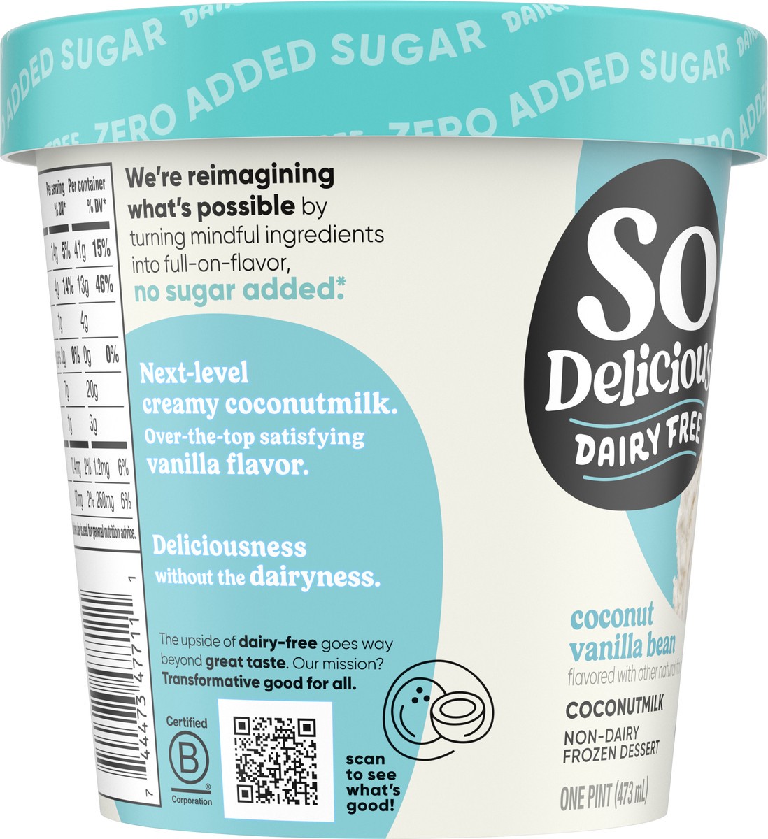 So Delicious Dairy Free No Sugar Added Vanilla Bean Coconut Milk Frozen Dessert - 16 Fl. Oz.