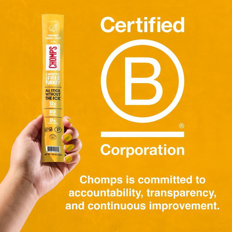 - As a Certified B Corp Chomps is committed to accountability, transparency, and continuous improvement