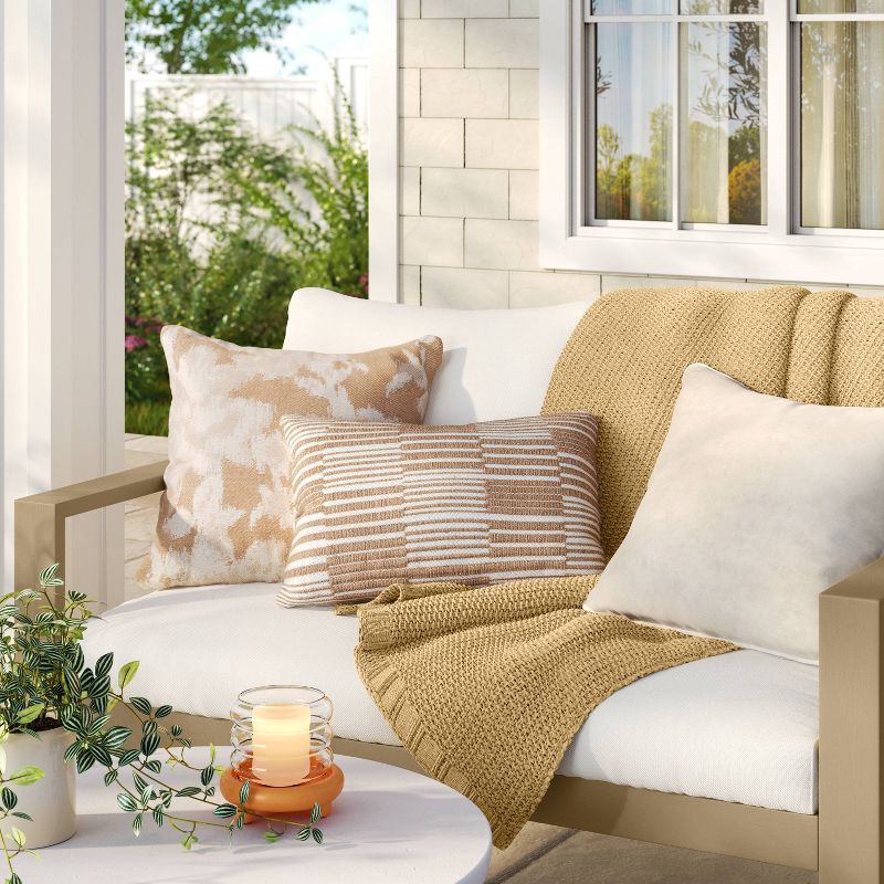 Add a sophisticated charm to your seating space with this Natural Weave Outdoor Back Cushion from Threshold™. Made of 100% recycled polyester material with polyester filling, this back cushion offers …