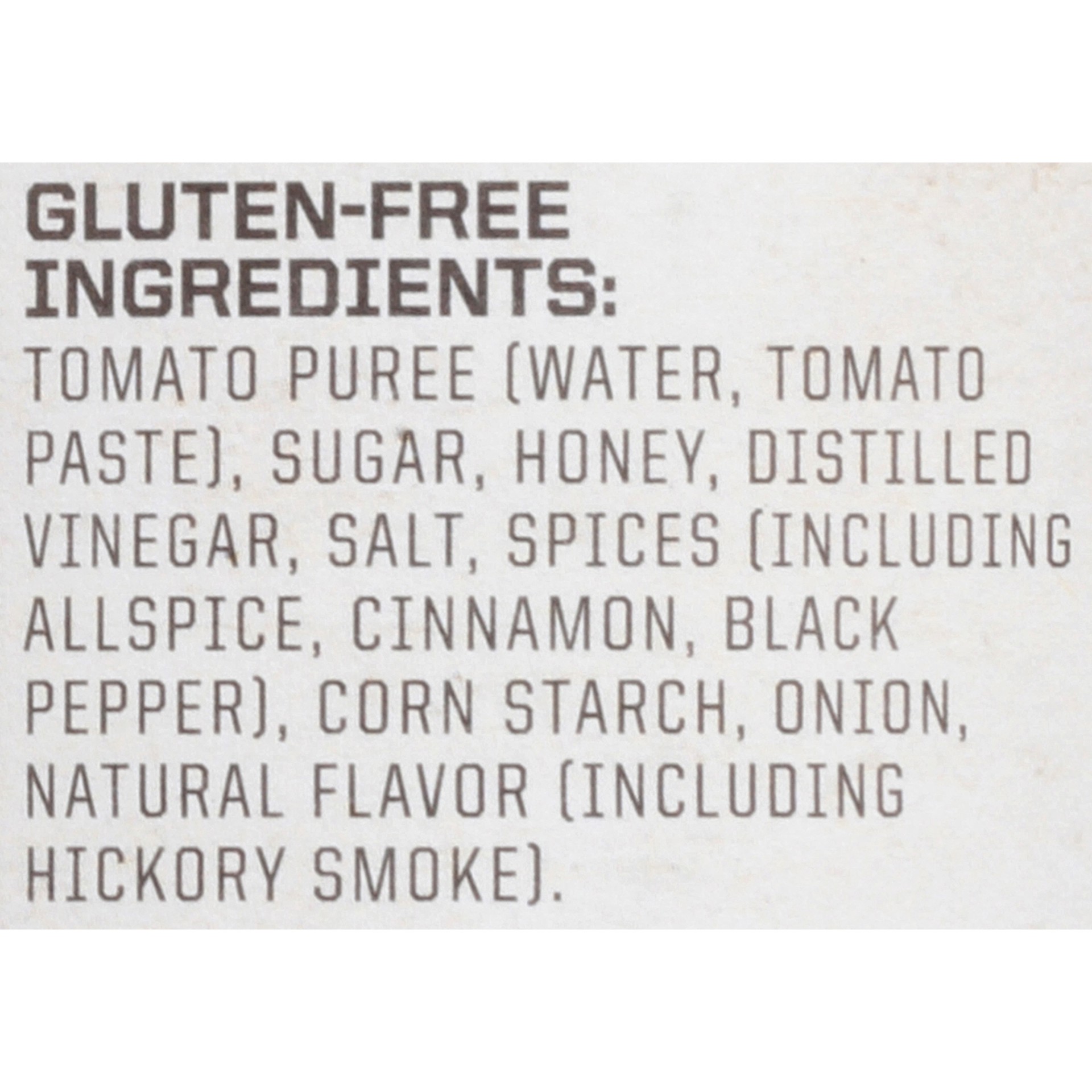 Tomato Puree (Water, Tomato Paste), Sugar, Honey, Distilled Vinegar, Salt, Spices (Including Allspice, Cinnamon, Black Pepper), Corn Starch, Onion, Natural Flavor (Including Hickory Smoke).
