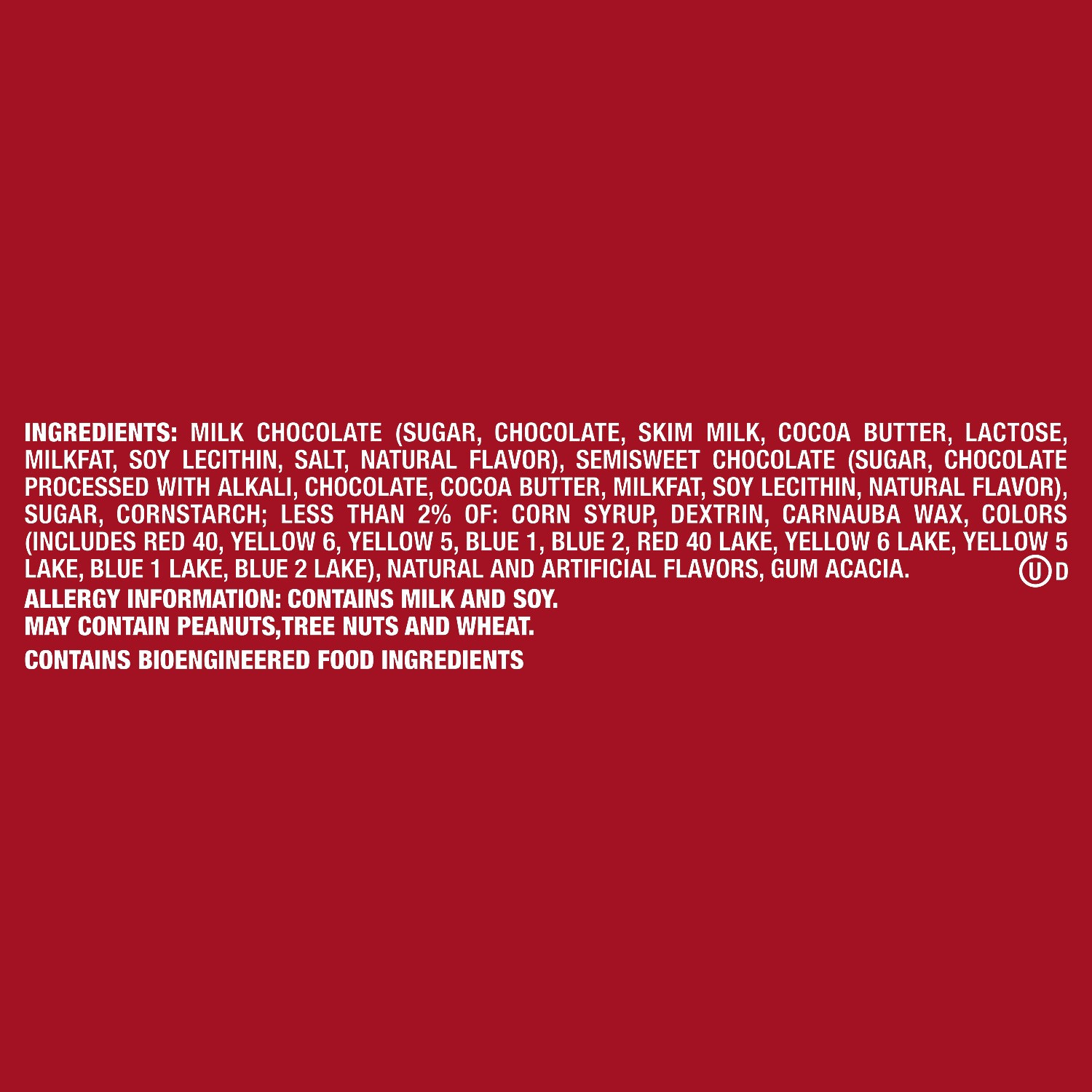 MILK CHOCOLATE (SUGAR, CHOCOLATE, SKIM MILK, COCOA BUTTER, LACTOSE,MILKFAT, SOY LECITHIN, SALT, NATURAL FLAVOR), SEMISWEET CHOCOLATE (SUGAR, CHOCOLATEPROCESSED WITH ALKALI, CHOCOLATE, COCOA BUTTER, MI…