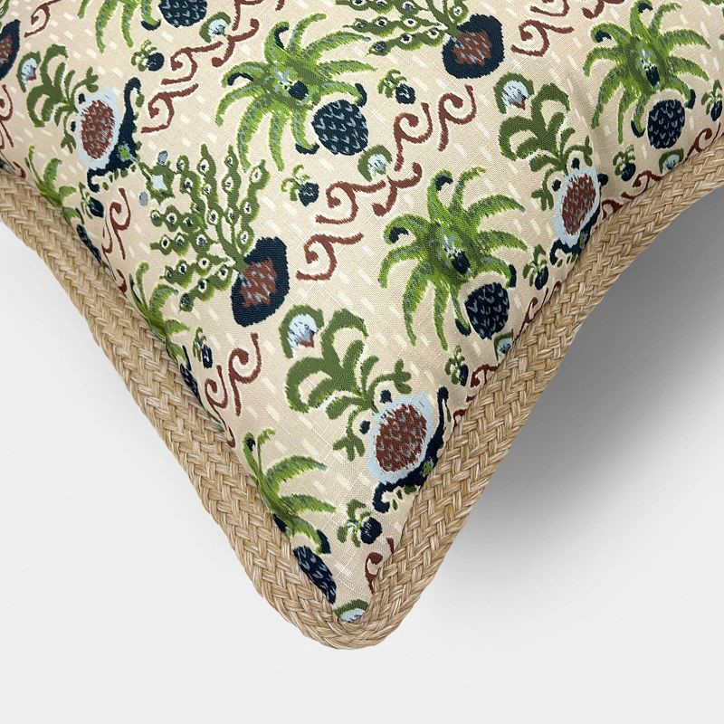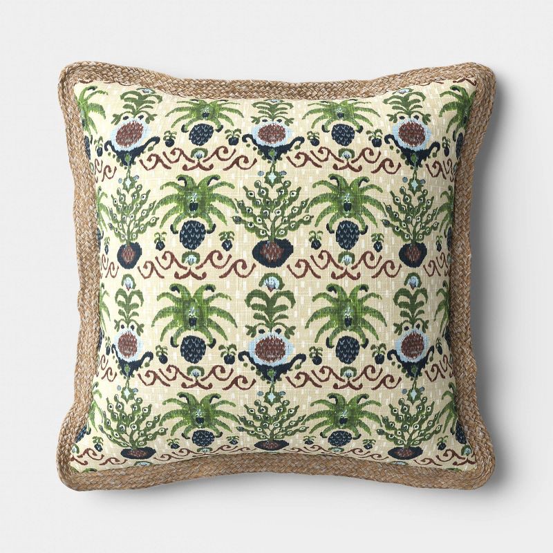Elevate your home aesthetics with this Square Tropical Ikat Outdoor Throw Pillow from Threshold™. Made of 100% recycled polyester with polyester filling, this throw pillow offers extra support and plu…