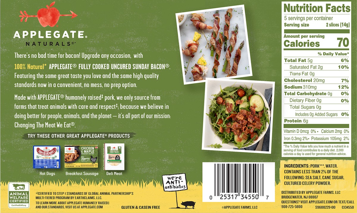 Applegaten Applegate Farms Hickory Smoked Fully Cooked Uncured Sunday Bacon