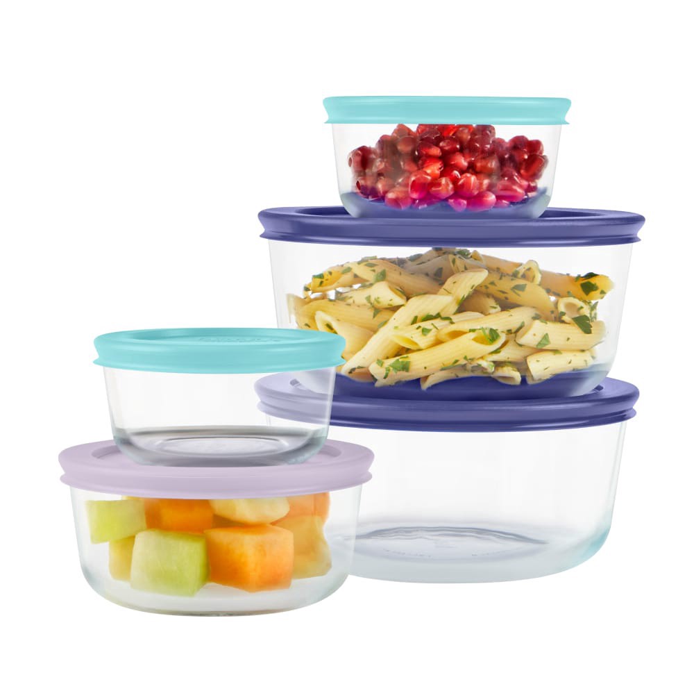 Pyrex® Simply Store 10-pc Storage Set features 3 sizes of glass containers for all your storage needs: (2) 1-cup with lid (1) 2-cup with lid (2) 4-cup with lid