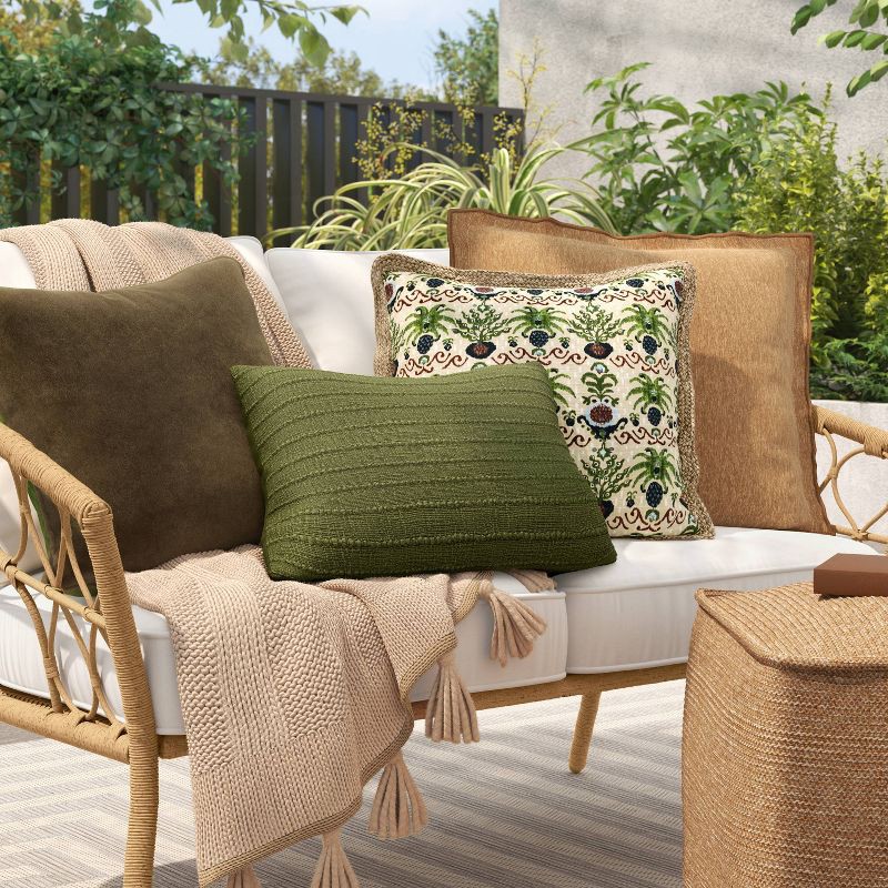 20"x14" Lumbar Solid Textural Weave Outdoor Back Cushion Green - Threshold™