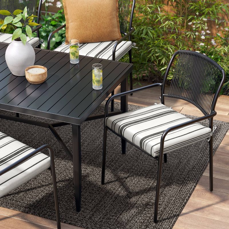 18"x20" Striped Outdoor Chair Cushion Black - Threshold™