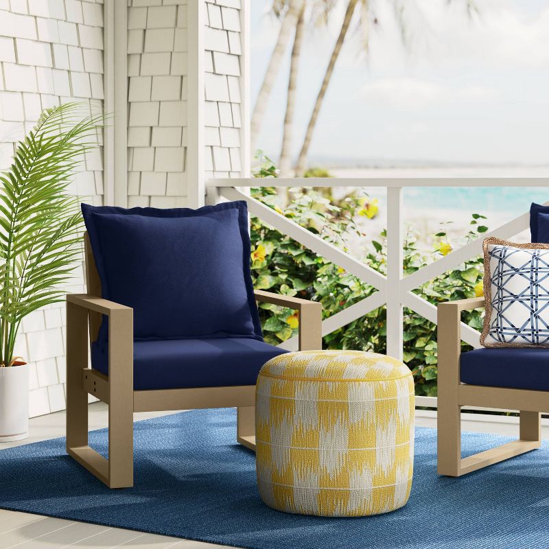 20"x14" Brushstroke Ikat Outdoor Patio Pouf Yellow - Threshold™