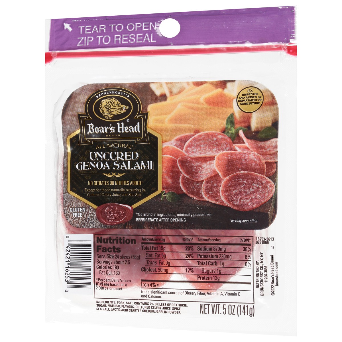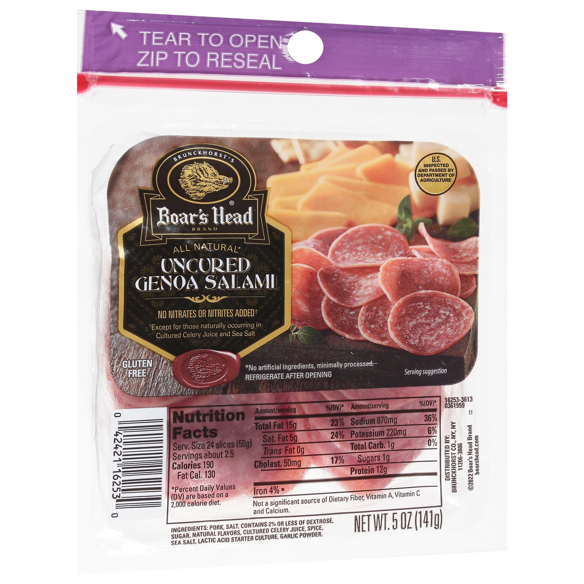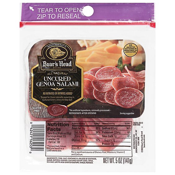 Boar''s Head Uncured Genoa Salami is hand-crafted according to century-old Salumiere traditions and boasts a robust flavor from an expert blend of pork with peppercorns.