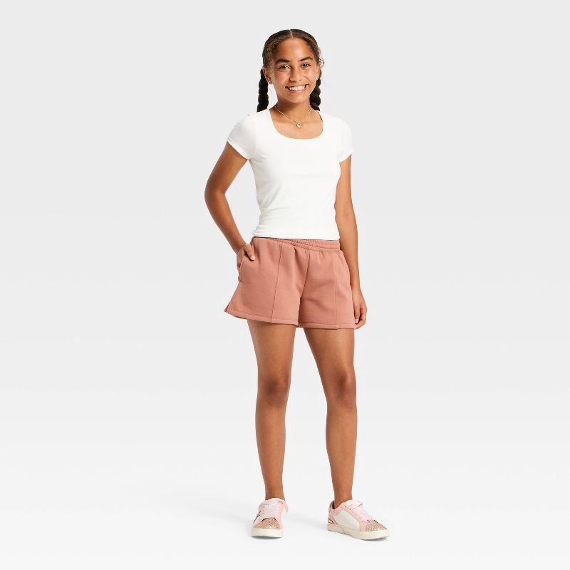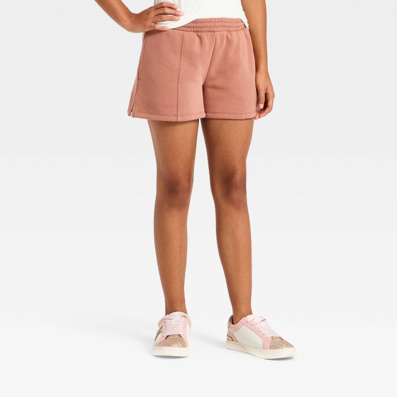 slide 1 of 3, Girls' Fleece Shorts - art class™ Brown L, 1 ct