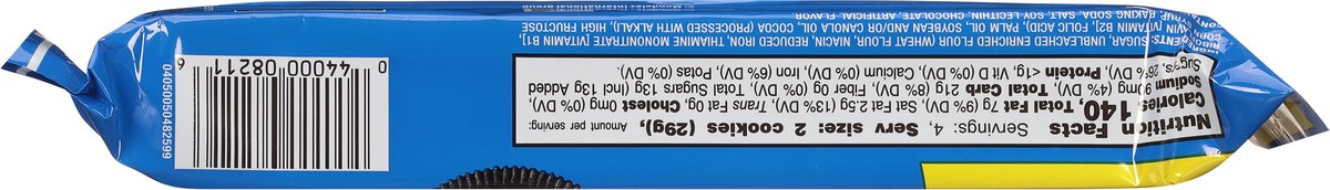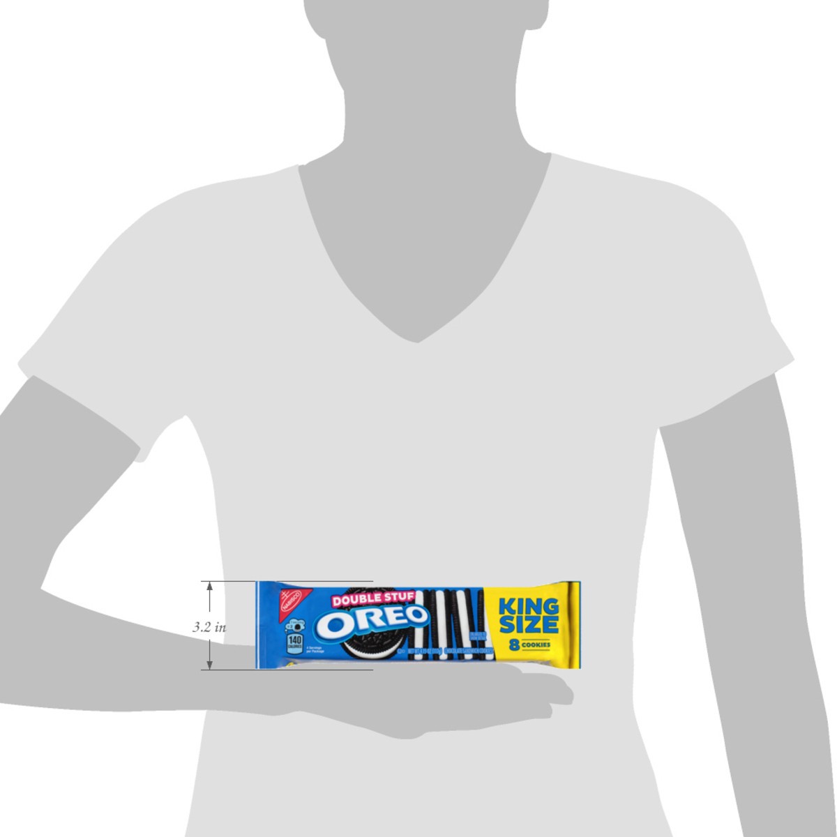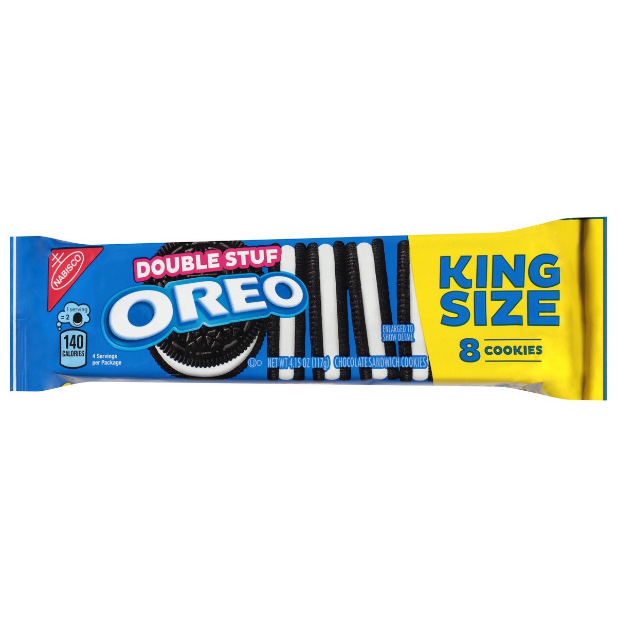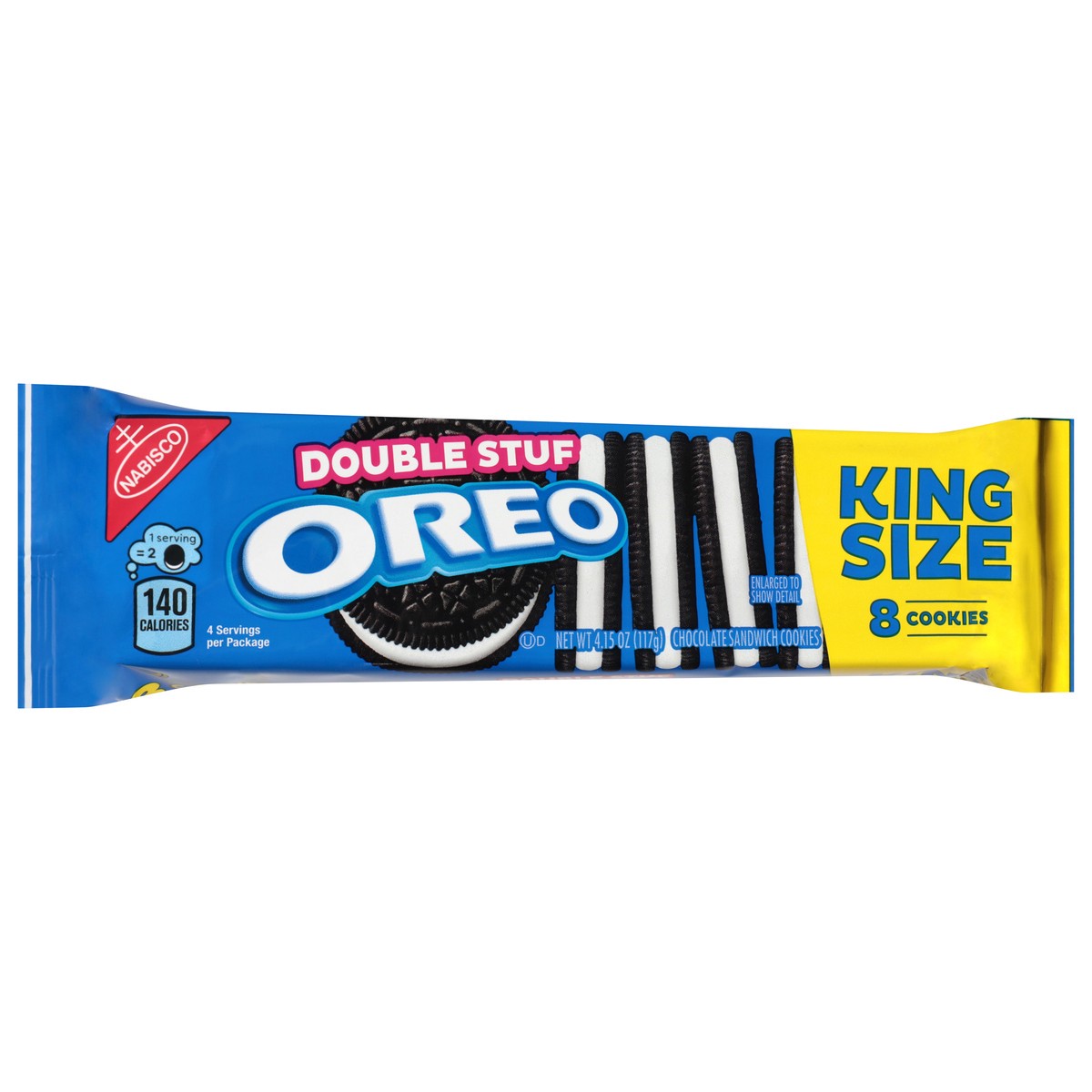- One 4.15 oz king size snack pack with 8 cookies each of OREO Double Stuf Chocolate Sandwich Cookies