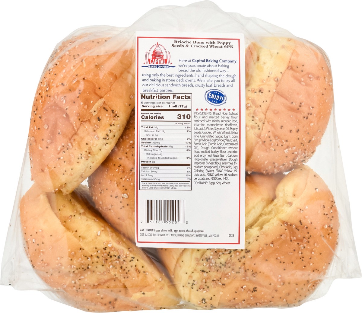 Bread Flour (Wheat Flour and Malted Barley Flour Enriched with Niacin, Reduced Iron, Thiamine Mononitrate, Riboflavin, Folic Acid), Water, Soybean Oil, Poppy Seeds, Cracked Whole Wheat, Extra Fine Gra…