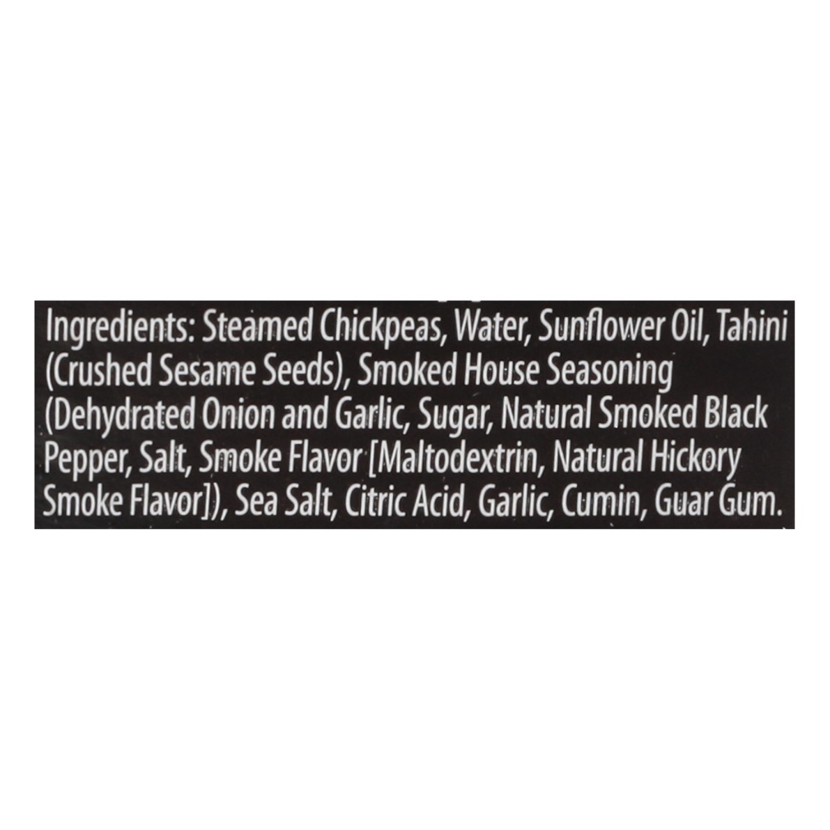 Steamed Chickpeas, Water, Sunflower Oil, Tahini (Crushed Sesame Seeds), Smoked House Seasoning (Dehydrated Onion and Garlic, Sugar, Natural Smoked Black Pepper, Salt, Smoke Flavor [Maltodextrin, Natur…