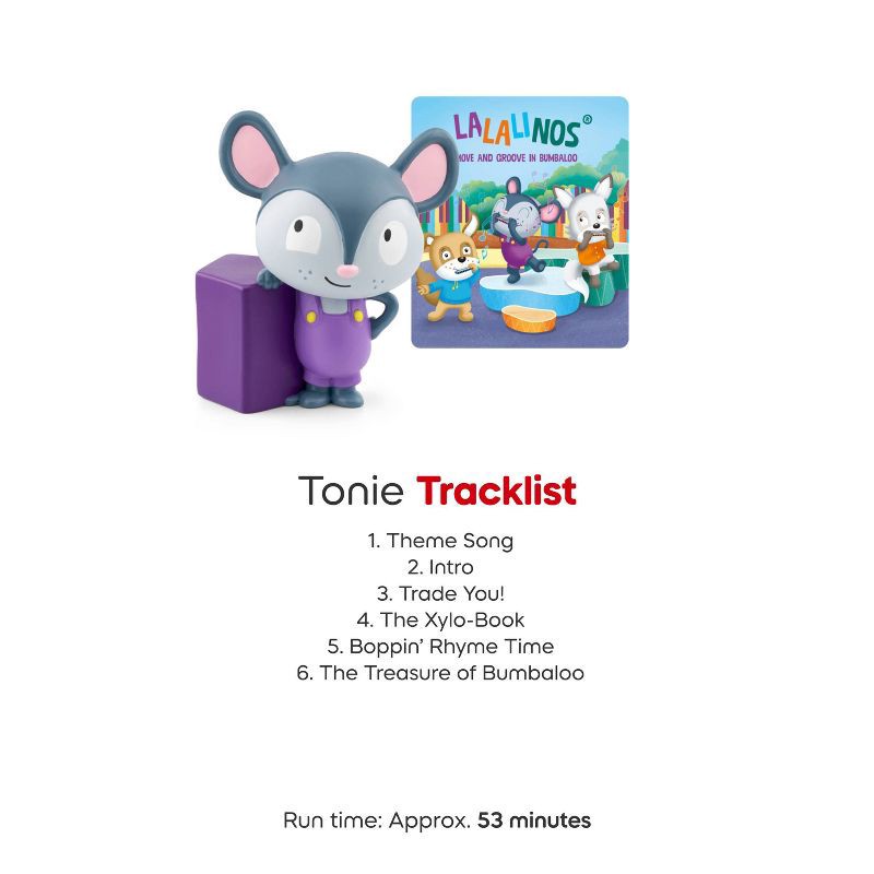 Musical Adventures in Bumbaloo: Fun, Friendship, and Lalalinos Songs!This Tonie features four musical adventures and great songs from the musical trio of Bumbaloo. Scout plays her new harmonica non-st…