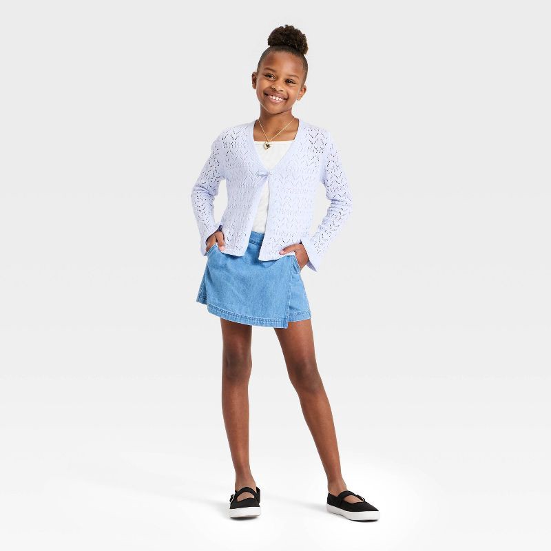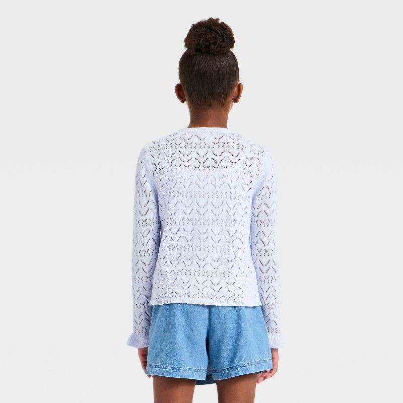 Girls' Pointelle Open Cardigan Sweater - Cat & Jack™ Pale Lavender M