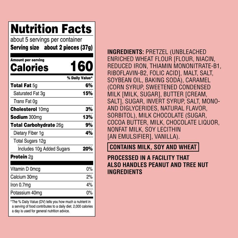 PRETZEL (UNBLEACHED ENRICHED WHEAT FLOUR [FLOUR, NIACIN, REDUCED IRON, THIAMIN MONONITRATE-B1, RIBOFLAVIN-B2, FOLIC ACID], MALT, SALT, SOYBEAN OIL, BAKING SODA), CARAMEL (CORN SYRUP, SWEETENED CONDENS…