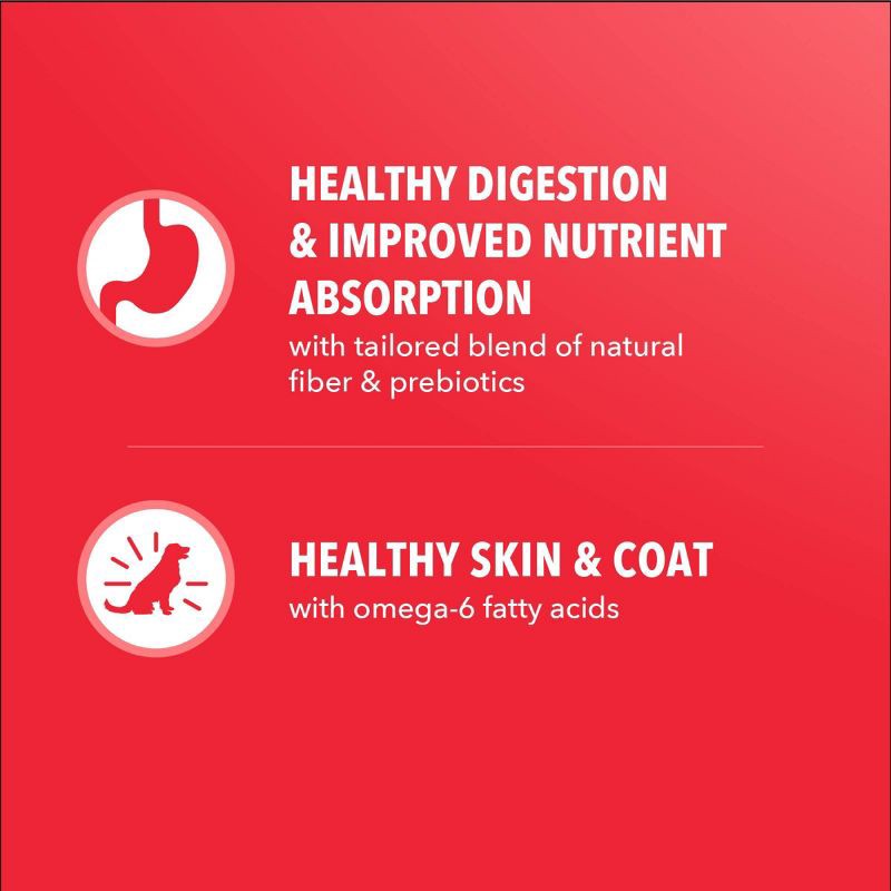 - Supports Healthy Skin and Coat: This dog food supports a healthy skin & coat with an optimal ratio of omega 6 & 3 fatty acids which help reduce skin inflammation and supports a shiny coat.