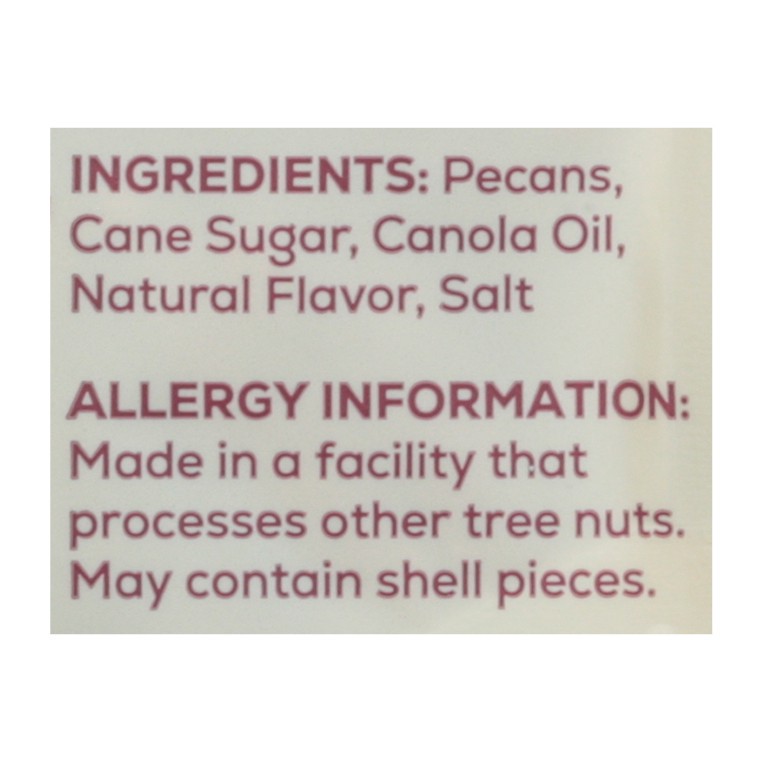 Pecans, Cane Sugar, Canola Oil, Natural Flavor, Salt.