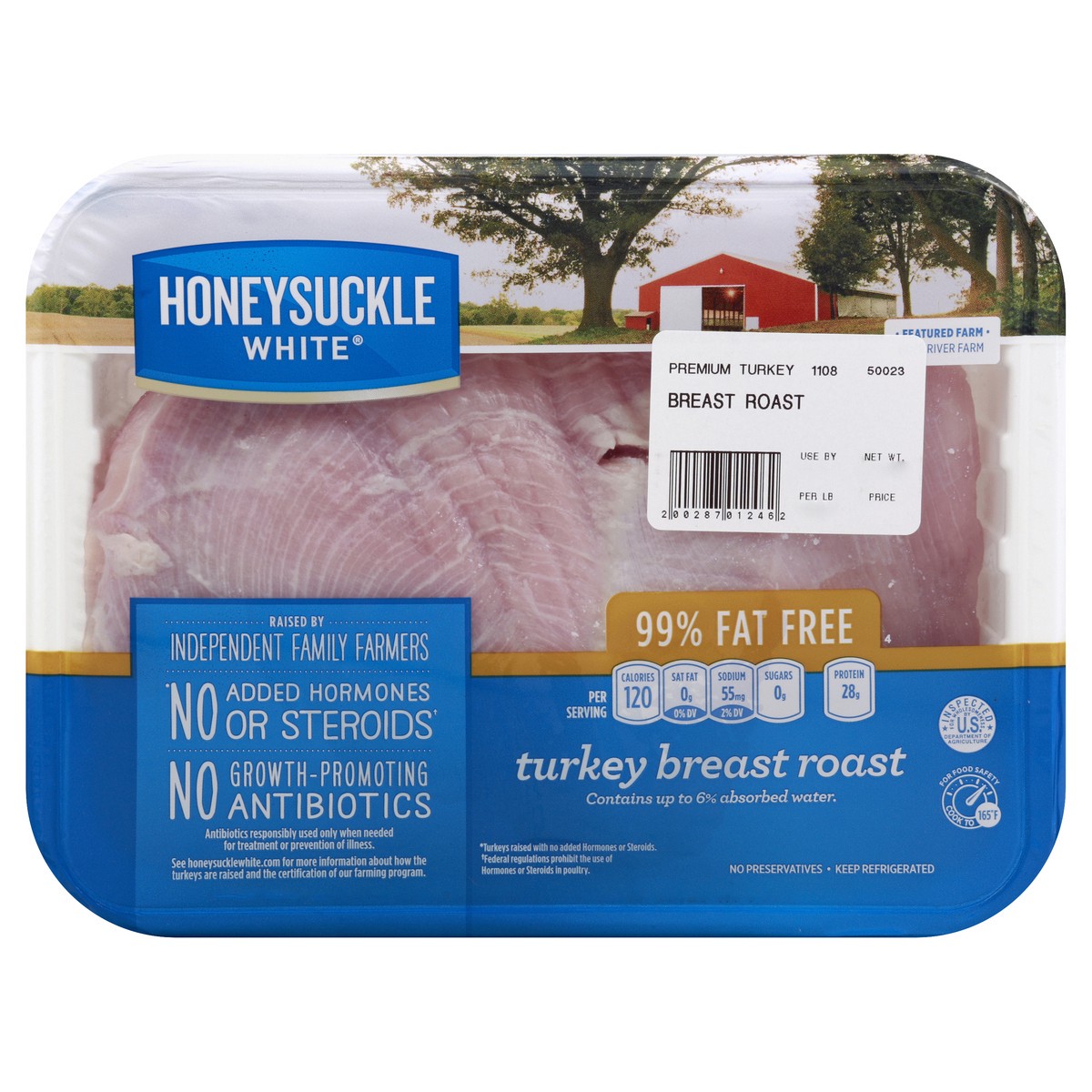 Per Serving: 120 calories; 0 g sat fat (0% DV); 55 mg sodium (2% DV); 0 g sugars; 28 g protein. Raised by independent family farmers. (Turkeys raised with no added hormones or steroids) No added hormo…