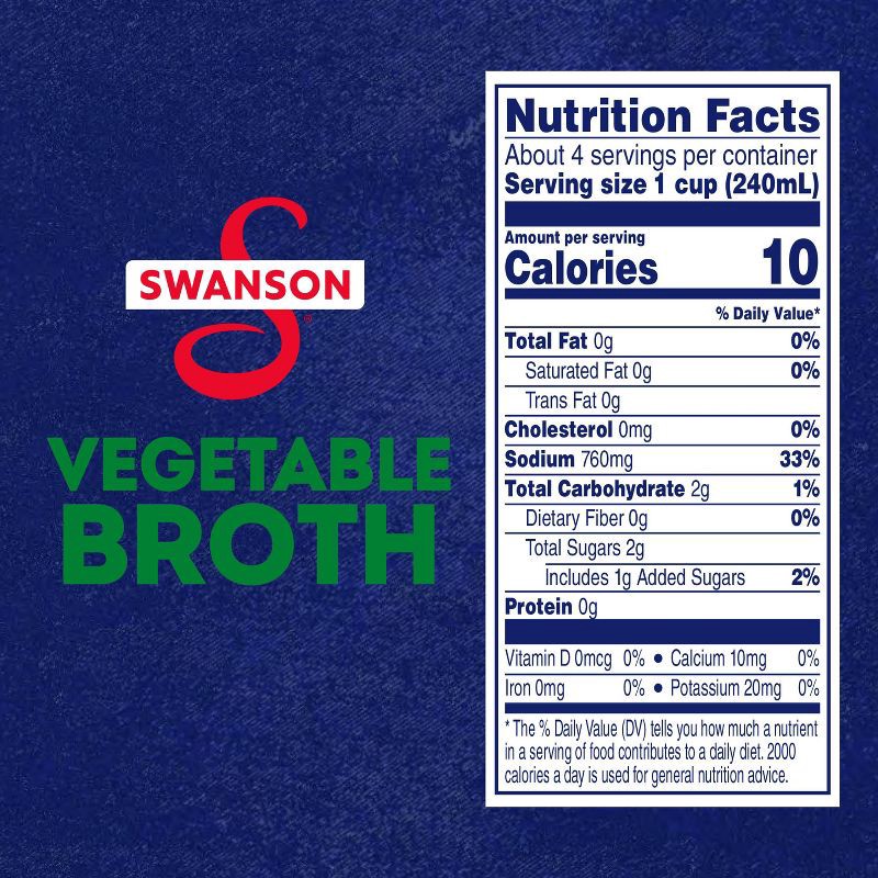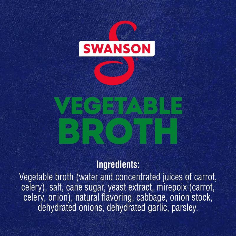 - Swanson® Vegetable Broth is made with quality ingredients for a rich homemade taste