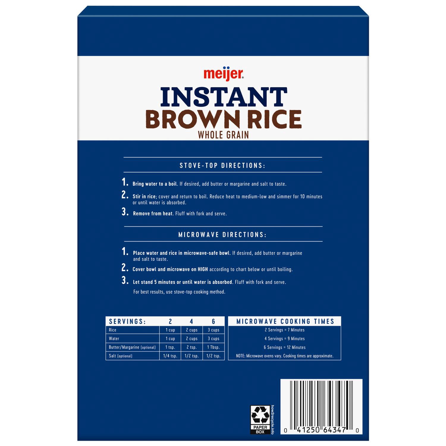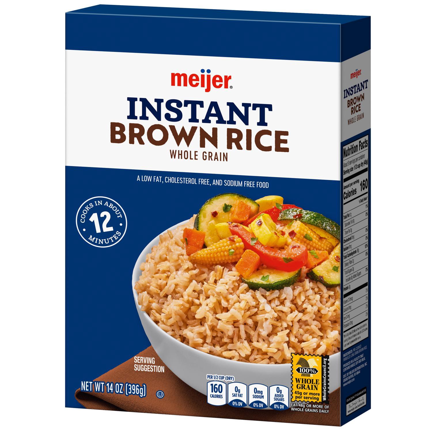 Meijer Instant Whole Grain Brown Rice is ready in 10 minutes! Once cooked, the rice is fluffy and the grains are separate with a slightly nutty flavor. This rice can be prepared on the stove or in the…
