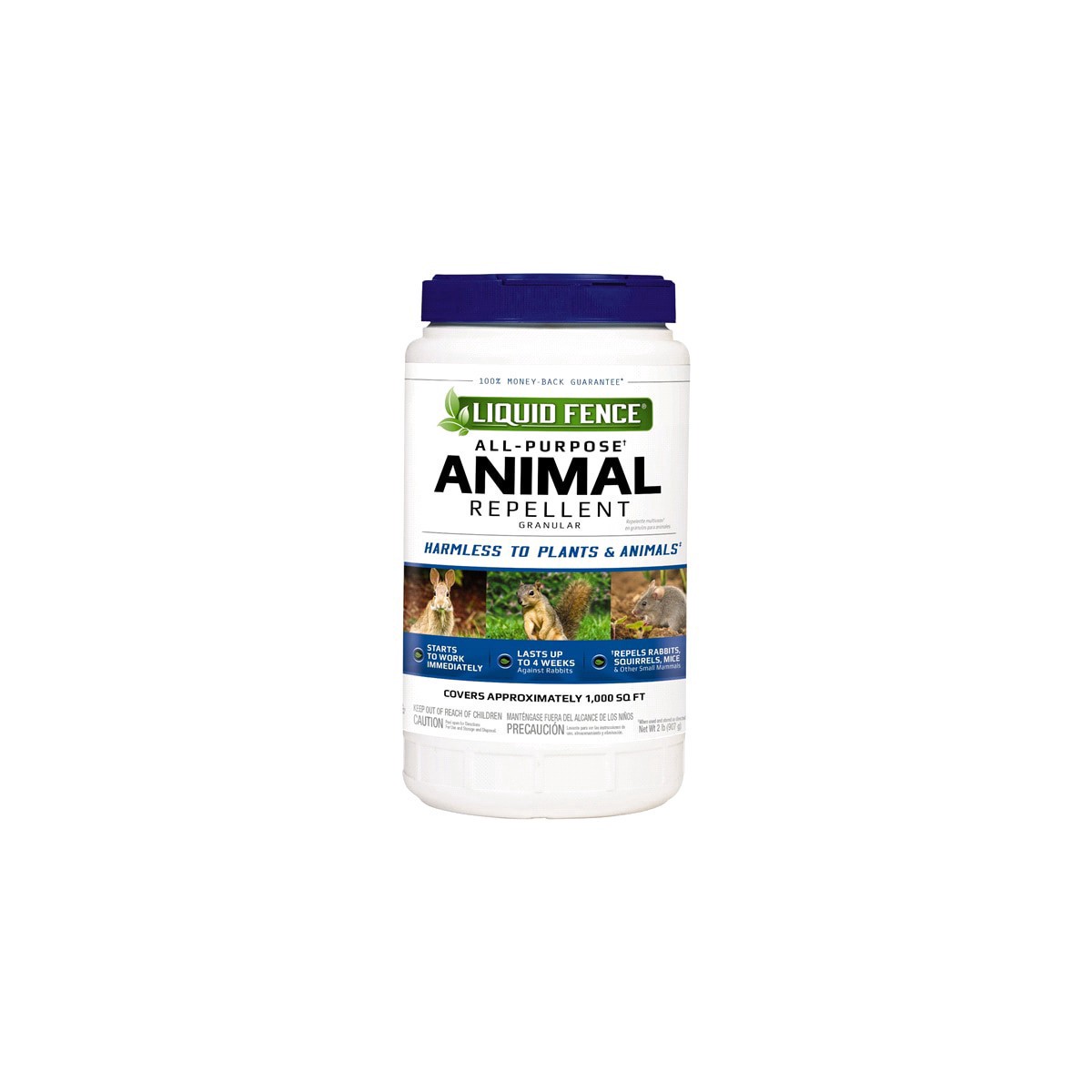 Repels rabbits, mic, squirrels and other small mammals. Harmless to plants and animals. Safe for kids, pets, and wildlife. Starts to work immediately. Lasts up to4 weeks against rabbits.