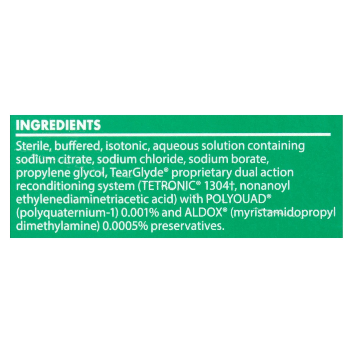 Sodium Citrate, Sodium Chloride, Sodium Borate, Propylene Glycol, Tetronic 1304, Non-Anoyl Ethylernediaminetriacetic Acid