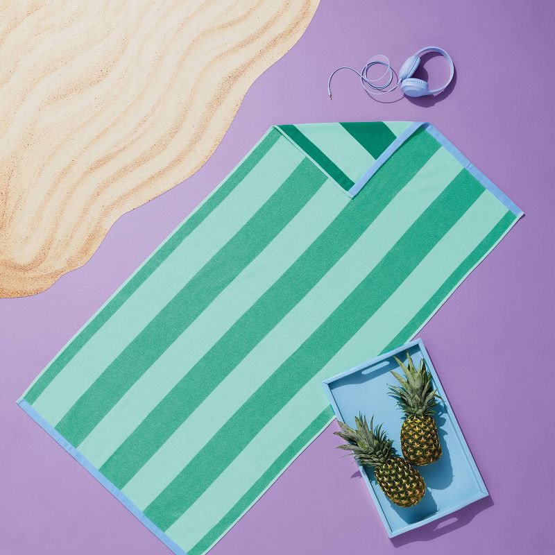 Bring timeless style to your beach days with this Vertical Cabana Striped Reversible Sand-Resist Beach Towel from Sun Squad™. Crafted from lightweight 100% cotton terry fabric, this sand-resist towel …