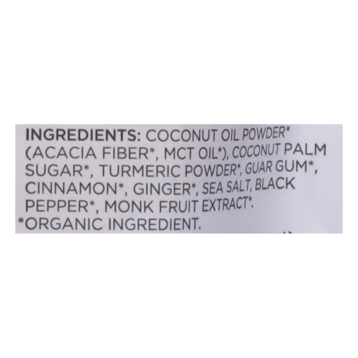 Coconut Oil Powder (Organic Ingredient) (Acacia Fiber (Organic Ingredient), Mct Oil (Organic Ingredient)), Coconut Palm Sugar (Organic Ingredient), Turmeric Powder (Organic Ingredient), Guar Gum (Orga…