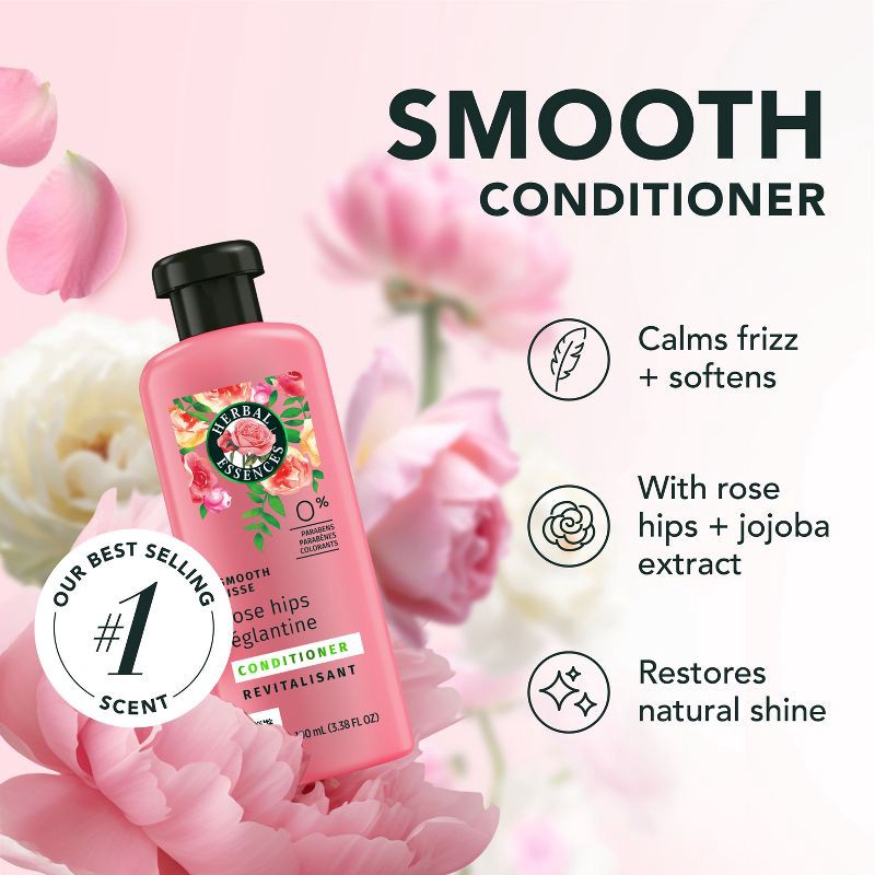 - SMOOTH HAIR: Herbal Essences Rose Hips Smooth Conditioner conditions and nourishes to smooth hair for a shiny, smooth end look