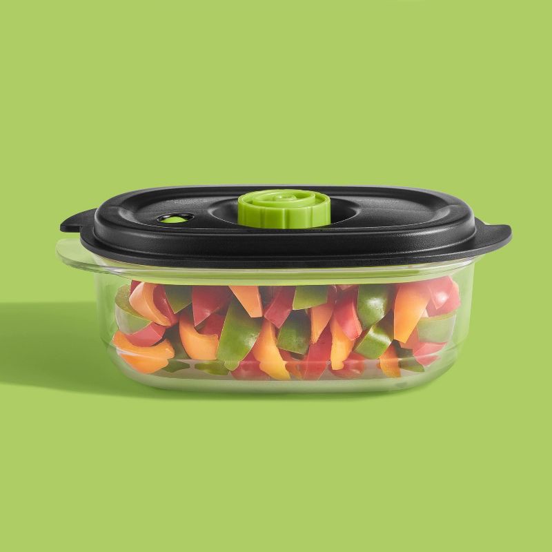 - Containers have a powerful vacuum seal, a flexible lid with easy-open tabs, and a rounded shape that's easy to clean