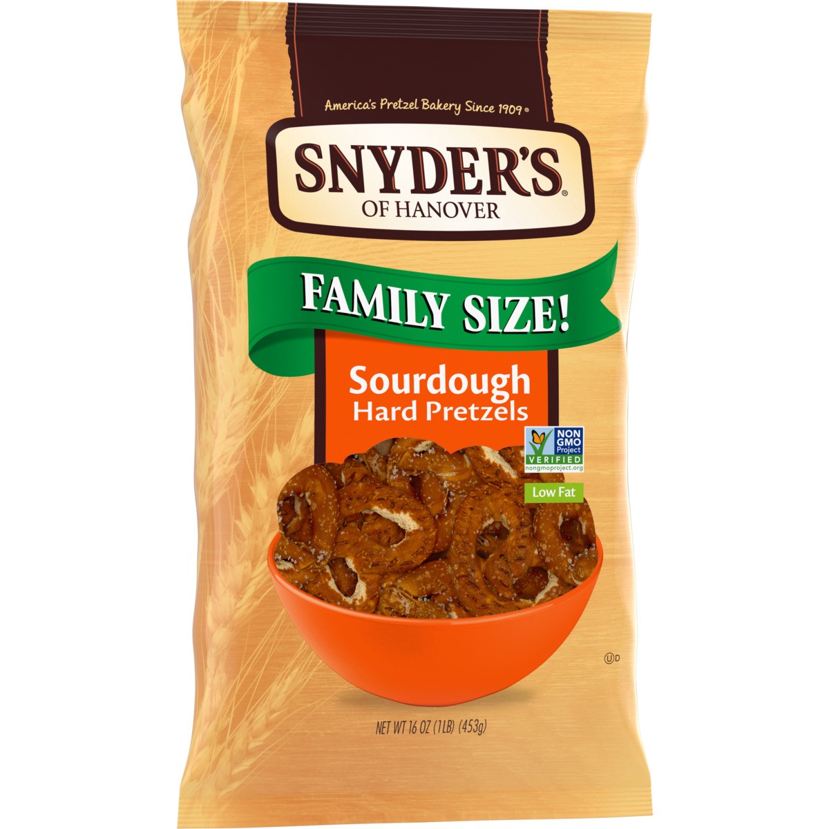 With Snyder's of Hanover Sourdough Hard Pretzels,you can enjoy the great taste of aged sourdough in a crunchy, traditional pretzel shape. Everyone can enjoy this Non-GMO Project Verified snack, which …